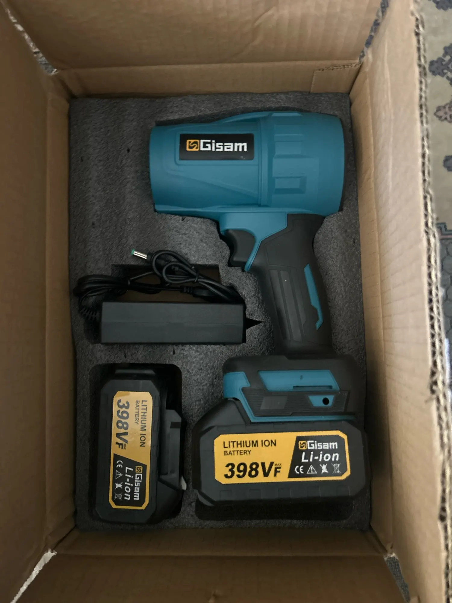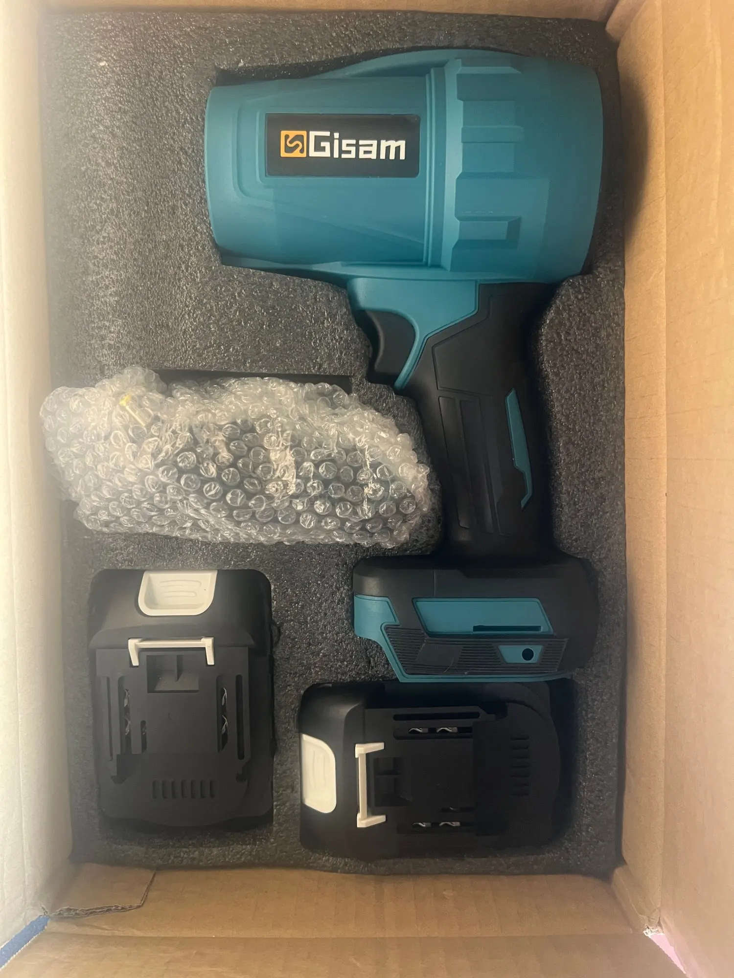 Realmente bueno, es un poder de la naturaleza, con tres velocidades. Ten cuidado al apuntarle a la cara de alguien porque no resistirán. Es realmente un viento fuerte. Las baterías se cargan y luego están completas. Muy buen artículo, altamente recomendado.